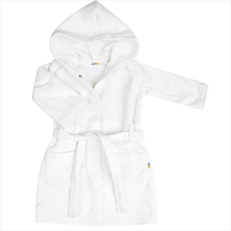Super nice bathrobe with hood. This one is in a nice white color. There are press buttons and ties. Certifications: Oeko-tex 100