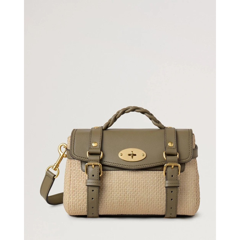Mulberry Mini Alexa Linen Green & Natural Raffia & LeatherThe Mini Alexa effortlessly combines elements from two iconic Mulberry styles: the Bayswater bag and the Elkington briefcase. The result is a miniature version of an understatedly cool satchel compl
